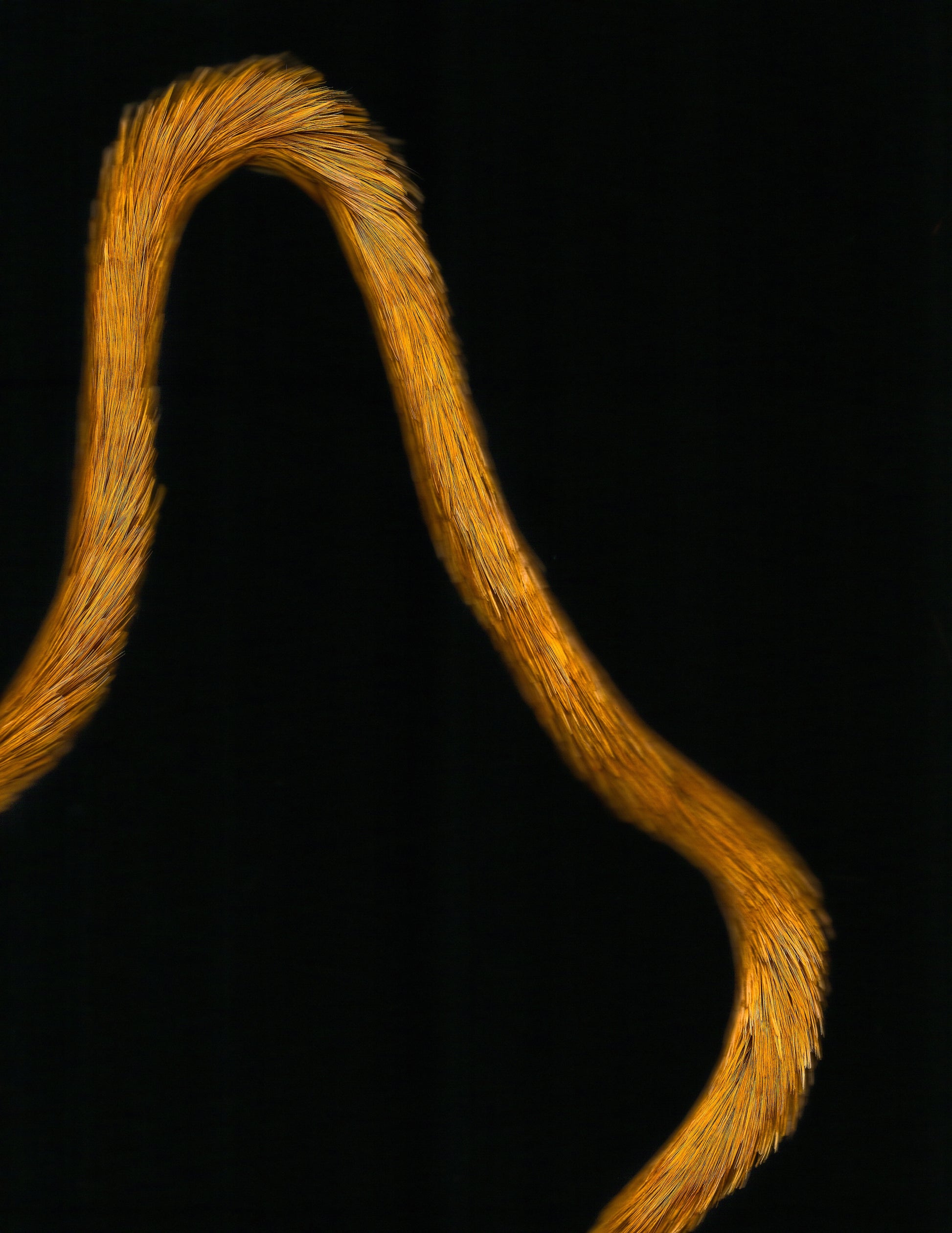 Through the high-resolution scans, the lei hulu becomes both subject and metaphor. Emerging luminous against the black expanse of pō, the feathers suggest a passage from darkness into light. For Phillips, lei hulu embodies resilience and transformation: a practice that illuminates even the deepest of shadows.
