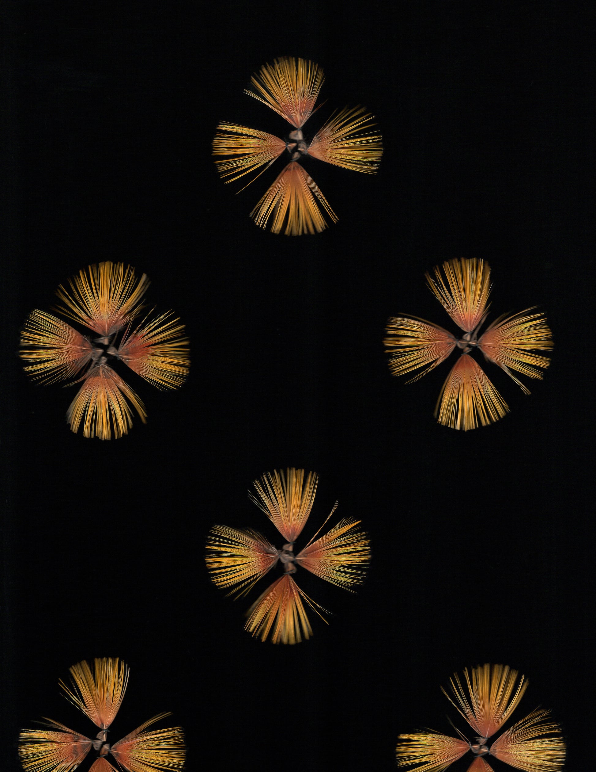 Through the high-resolution scans, the lei hulu becomes both subject and metaphor. Emerging luminous against the black expanse of pō, the feathers suggest a passage from darkness into light. For Phillips, lei hulu embodies resilience and transformation: a practice that illuminates even the deepest of shadows.